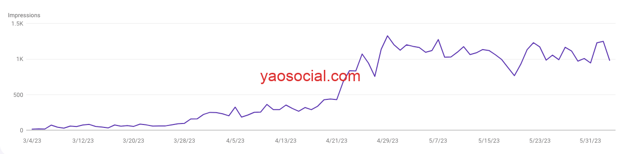 域名是全新的,刚拿到手时,0的权重。经过不断的优化和调整。从GSC后台可以看到谷歌上获得展示量,也是增长的很明显了。而Semrush上的域名权重在上个月的某一天突然从2蹦到了13。