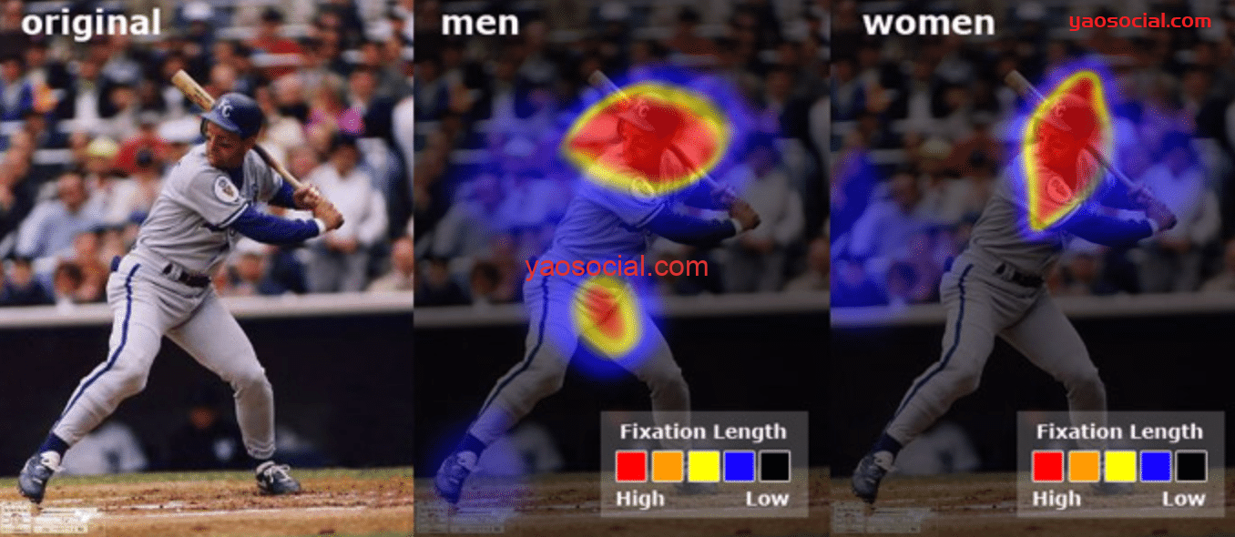 我们再看下面这个棒球手,这个差异就很明显了。男性用户对能够代表性别特征的部分给予了更多关注。