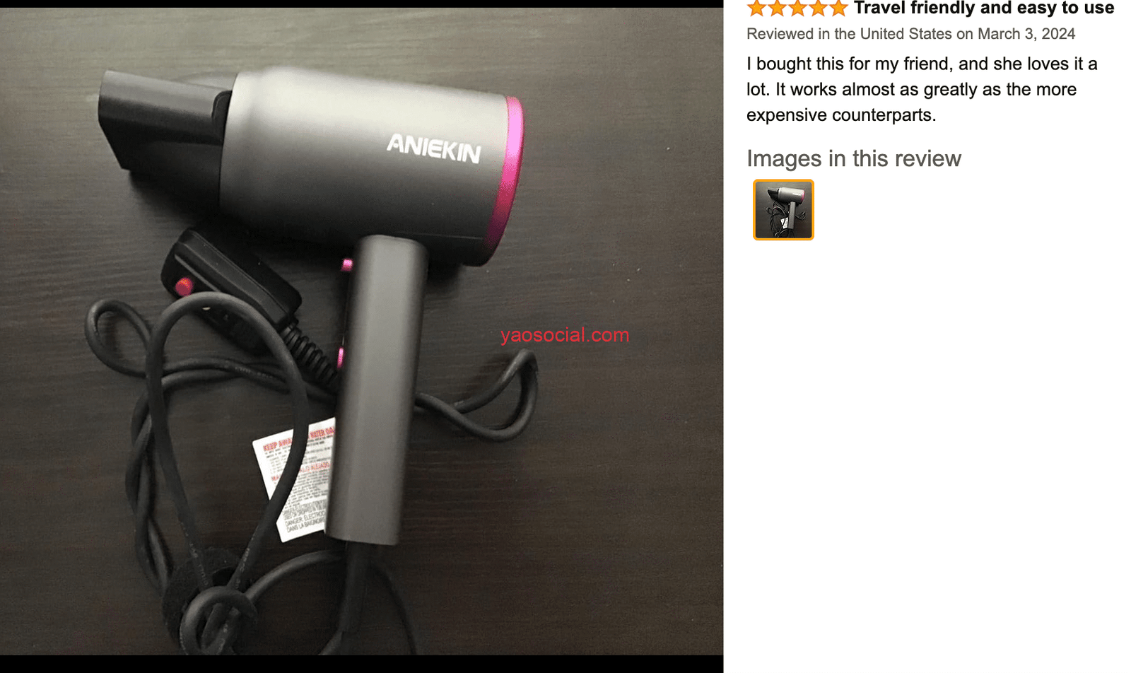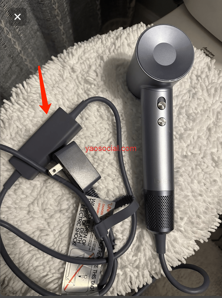 我对比了一下亚马逊美国站上其他卖吹风机的,他们的电源线长这样。和徕芬的电源线的确不一样。