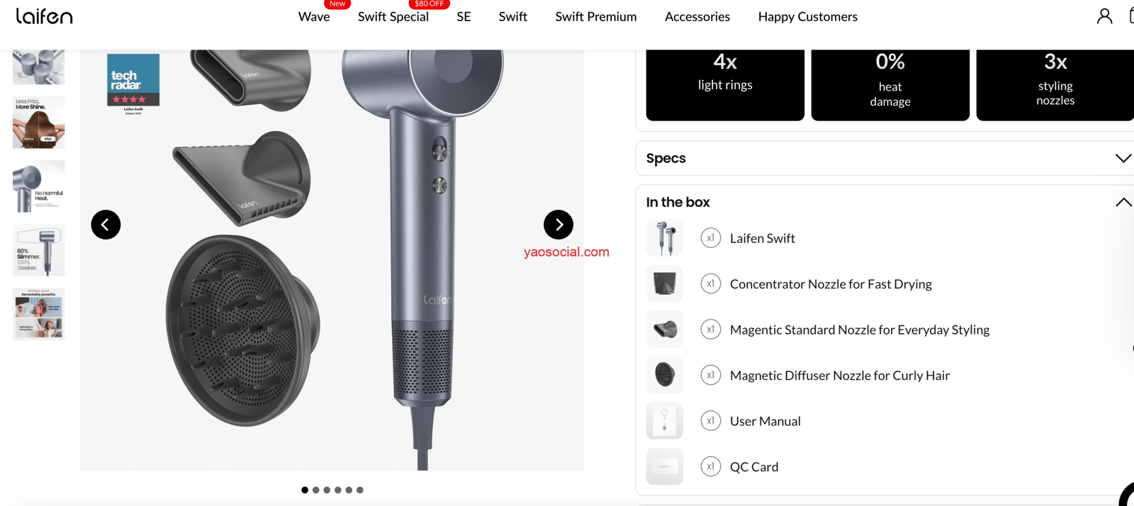 但是无论它是什么,从用户的评价中可以看到的是,徕芬在产品页面上并没有对这个笨重的漏电保护器做出文字说明或图片说明。而这个笨重的东西与英文单词“swift”的意思的确有所不符。